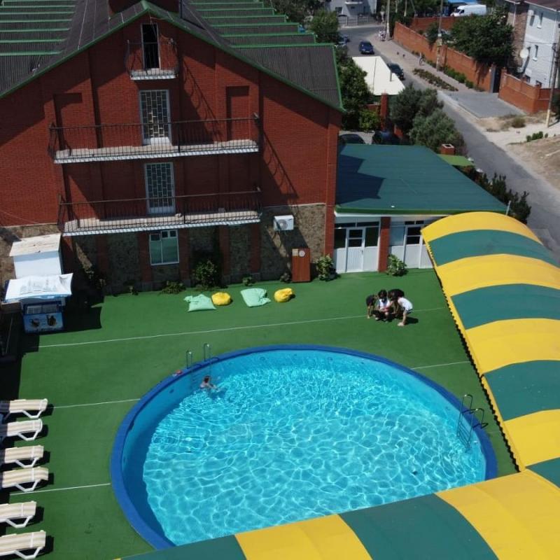 На территории есть бассейн, детская площадка и бар.