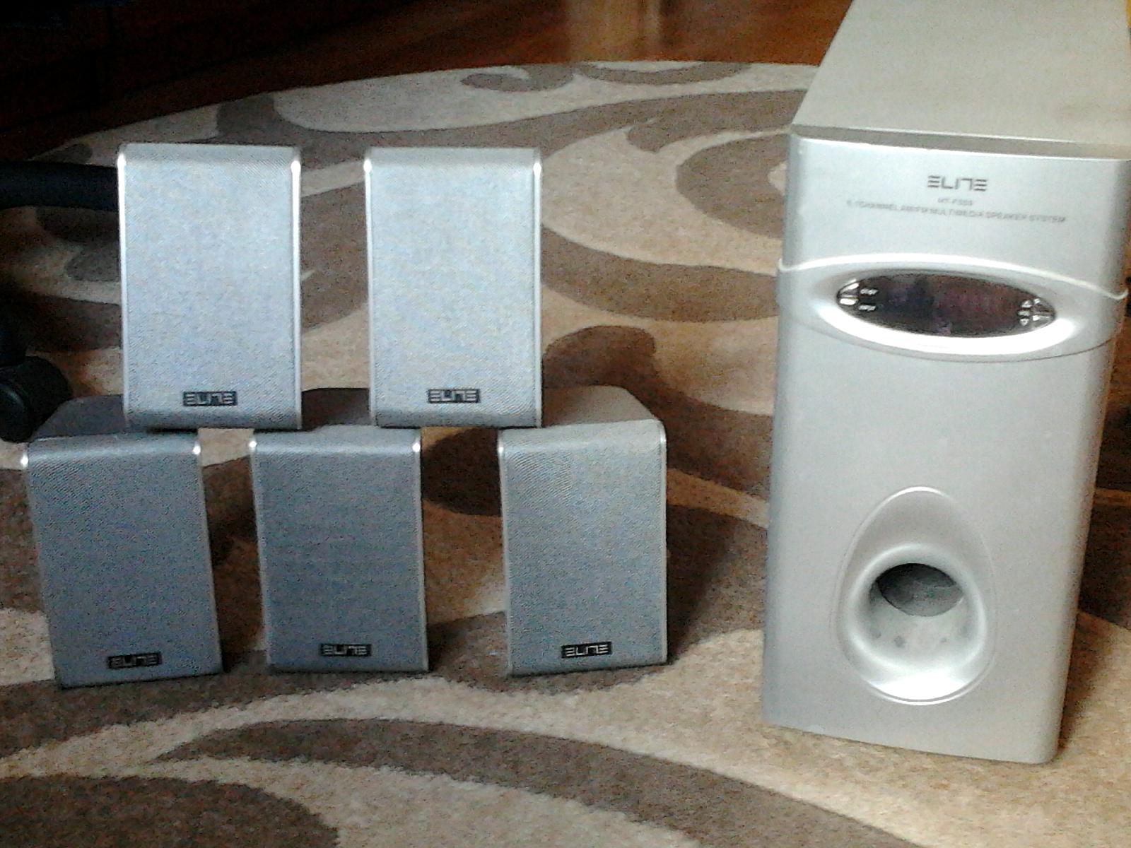 Сабуфер, колонки 5 шт, пульт управления – б/у, в хорошем состоянии.