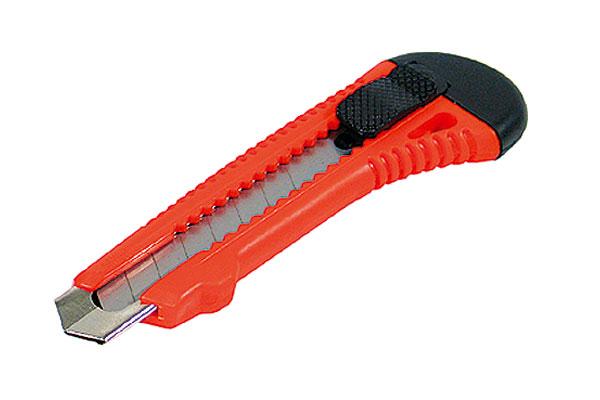 Нож прорезной АМ 0500 имеет пластмассовый корпус. Оснащен кнопкой выдвижения и фиксации лезвия. Режущее полотно – лезвие сменное, сегментированное, шириной 18 мм. Используется для резки бумаги, картона, бандажных лент при проведении строительных работ. Так же незаменим в быту и при изготовлении различных изделий своими руками.