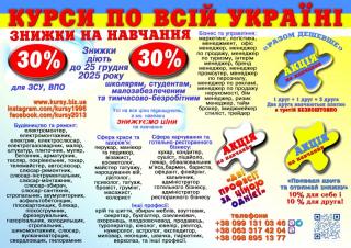 Курси фотограф, дієтолог, пилорамник, програміст, бармен, кухар